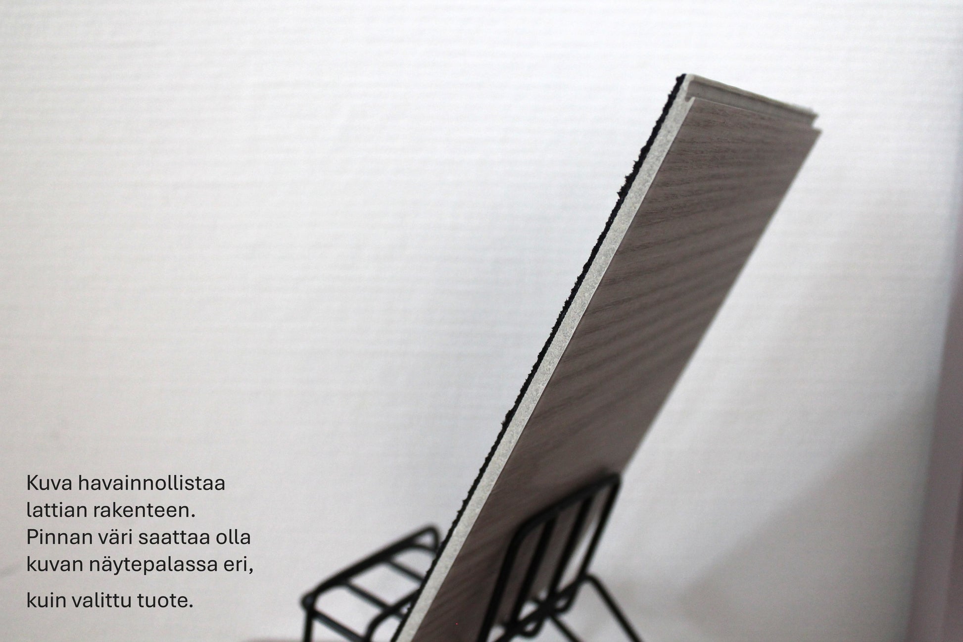 Paksuus: SPC-4mm,+ PUR-kulutuspinta 0.55mm +I XPE 1,5mm eli yhteensä 6,05mm. Lankun koko 183x1170mm.